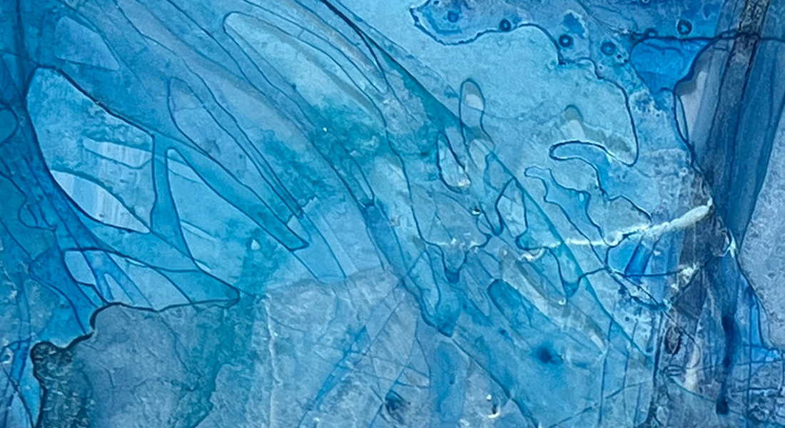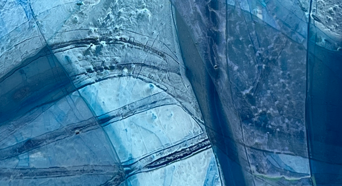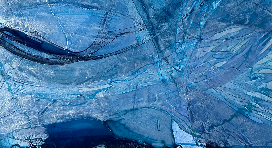 The works are inspired by the melting glaciers in Iceland and alluvial deposits left behind by flowing water.